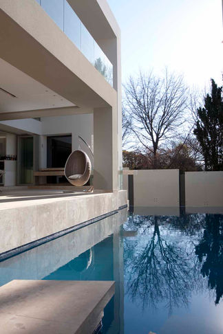 This residence is a fully integrated “Smart Home”. Anything that can be operated or turned on or off is or can be integrated into the Apple technology system which runs the home. There is a Hollywood cinema and a giant entertainment area as well as a sushi area on the patio. The elevator is made of glass and riding the floors one can watch the wet wall and colours change as it rises to the Sandton skyline vista.